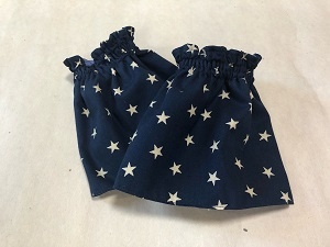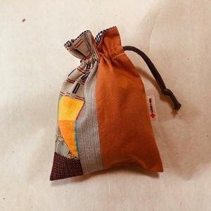 小さい巾着です。 小さい小さい端切れをつなぎ合わせて作りました。裏もついています。